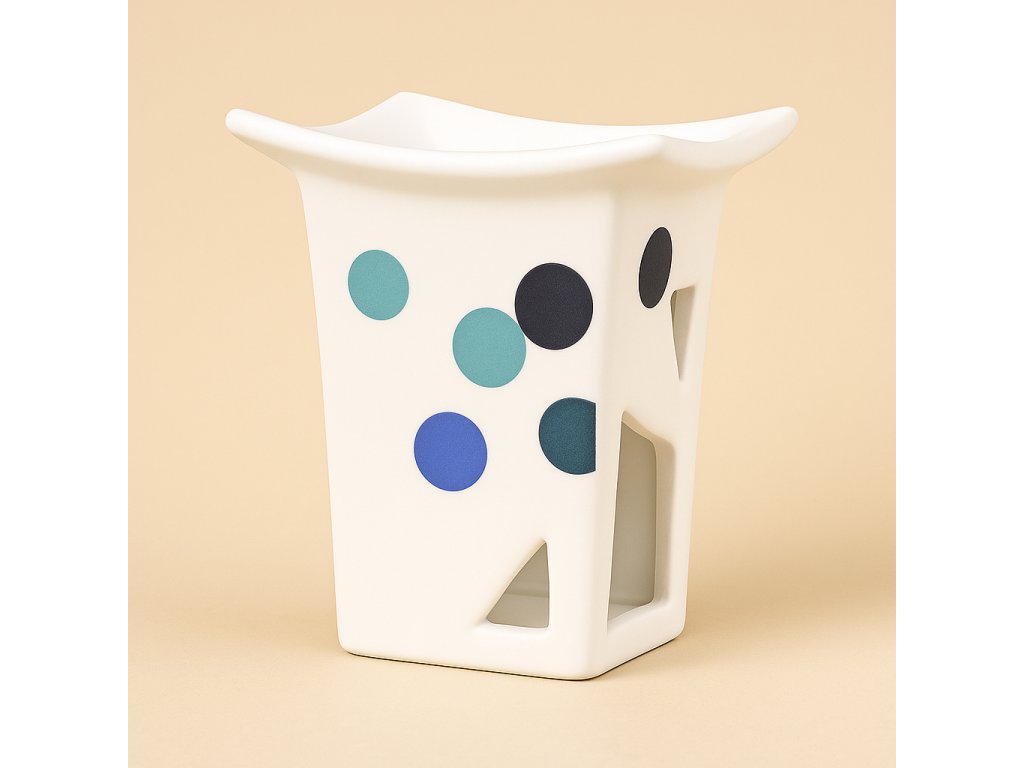 A9 - Aromalampa bílá s potiskem modrých puntíků keramická hranatá