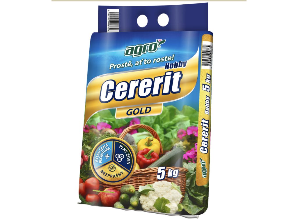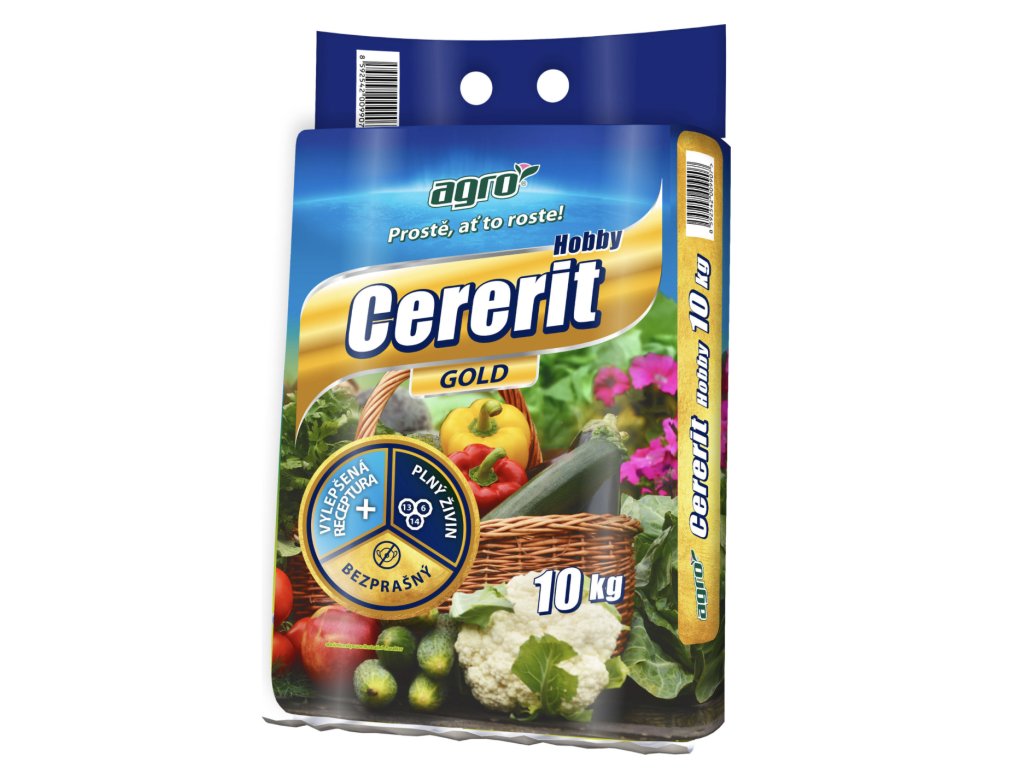 Agro Cererit Hobby Gold je organo-minerální bezchloridové granulované hnojivo s vyváženým poměrem živin N-P-K. Je vhodné pro zeleninu, ovocné stromy, okrasné rostliny i trávníky a podporuje zdravý růst i dlouhodobou úrodnost půdy.