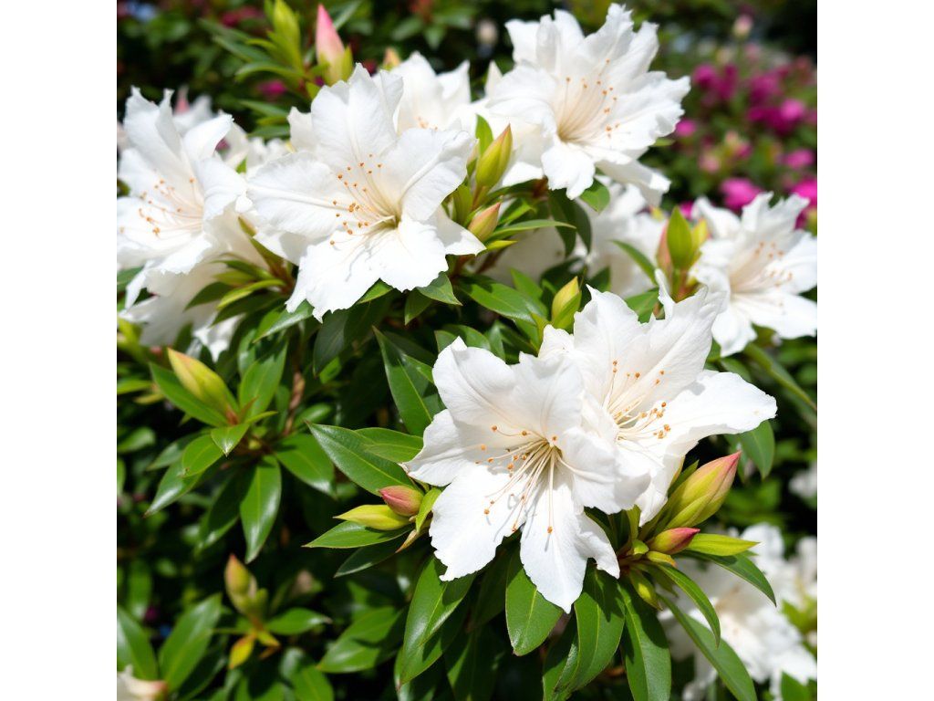 Použití: Azalka 'Whitethroat' je ideální volbou pro okrasné záhony, vřesoviště nebo jako solitér v nádobách. Její čistě bílé květy vyniknou ve spojení s dalšími okrasnými keři a trvalkami, čímž zahradě dodávají harmonii a eleganci. Umístěte ji na slunné nebo polostinné místo s dostatečnou vlhkostí půdy pro bohaté kvetení a zdravý růst 🌷.