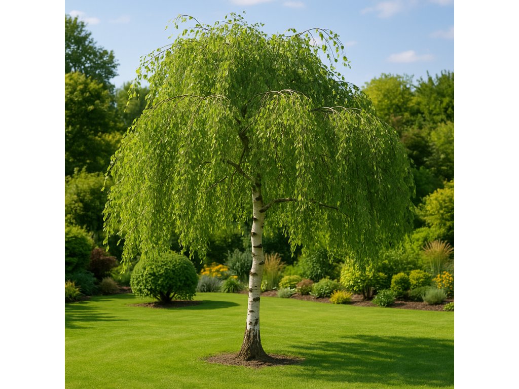 malebná převislá koruna a bílé kmeny pro celoroční efekt