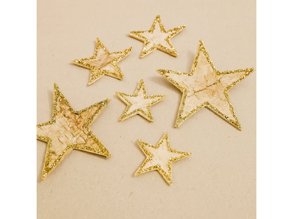 Březové hvězdičky se zlatými okraji 6ks/bal.
