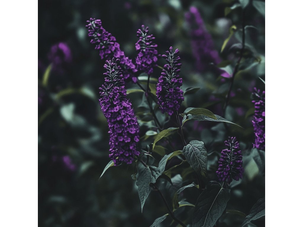 - Květy 🌸: Hustá, převislá květenství v sytě tmavě fialové barvě s lehkou vůní