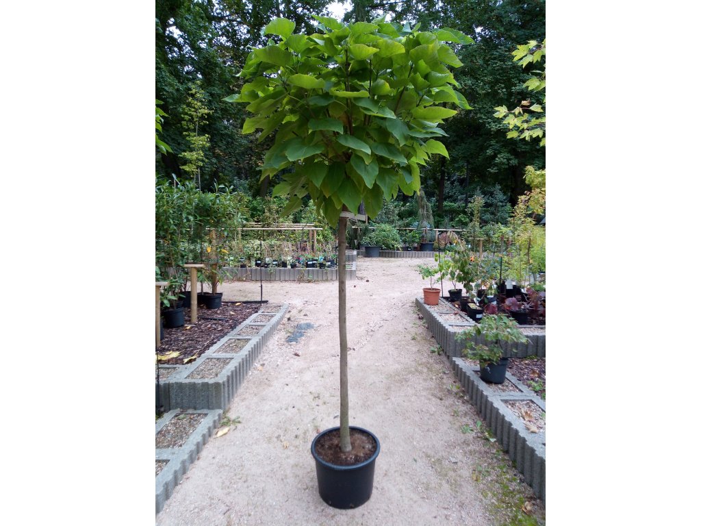 Katalpa 'Nana' je ideální pro solitérní výsadbu v trávníku, do terasových nádob nebo jako součást moderních kompozic v menších zahradách. Díky svému tvaru působí jako přirozená dominanta, aniž by přerůstala okolní prostor. Výborně se kombinuje s trvalkami, okrasnými travami nebo keři s kontrastní strukturou listů.