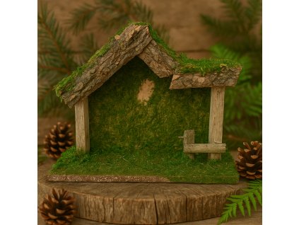 Přírodní vánoční betlém z dřeva a kůry, pokrytý pravým mechem, tvoří příjemně rustikální kulisu pro vlastní figurky. Díky kompaktním rozměrům se vejde na poličku, komodu i parapet a snadno ho začleníte do svátečního aranžmá. Otevřená přední strana a jednolitá mechová stěna umožňují přehledné umístění Svaté rodiny i dalších prvků podle vaší představy. Vhodné pro opakované použití v interiéru.