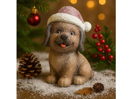 Keramická figurka roztomilého pejska s čepicí Santy Clause působí v interiéru přívětivě a hravě. Detaily v obličeji i strukturovaný povrch s jemným posypem sněhu vytvářejí dojem ruční práce. Ideální jako vánoční dekorace na poličku, stůl nebo pod stromeček. Díky stabilnímu podstavci stojí pevně a přirozeně doplní tradiční i moderní sváteční aranžmá.