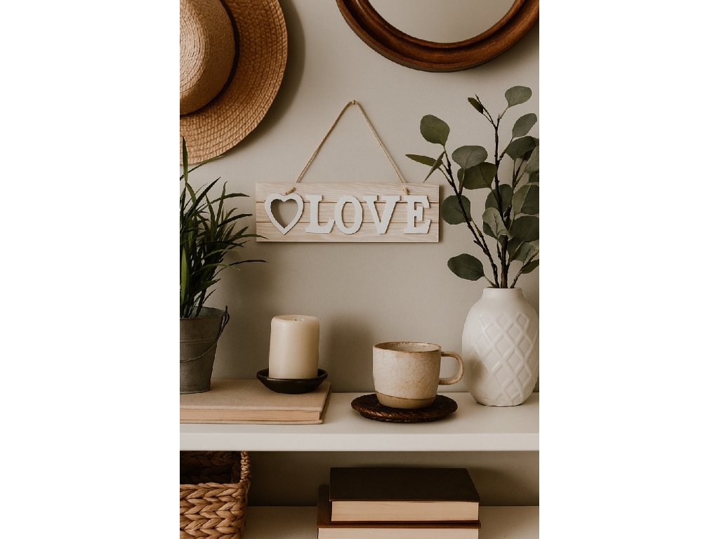 Dřevěná závěsná dekorace LOVE – přírodní bílá