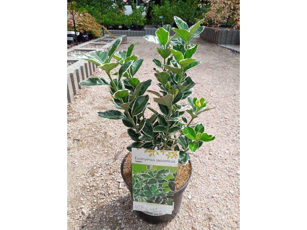 Brslen japonský 'Kathy' (Euonymus japonicus 'Kathy') stálezelený keř s panašovanými listy