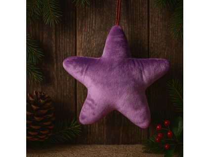Sametová závěsná hvězda v jemné fialové barvě působí měkce a decentně. Hebký textilní povrch a měkká výplň z vatoviny vytvářejí příjemný objem, který se uplatní na větvích stromku, ve věnci i v závěsu do okna. Díky lehké konstrukci se hodí i na jemnější chvojí, červený provázek usnadňuje zavěšení. Neutrální, elegantní tón snadno zkombinujete s přírodními materiály, stříbrnými i zlatými akcenty a s moderními minimalistickými dekoracemi.