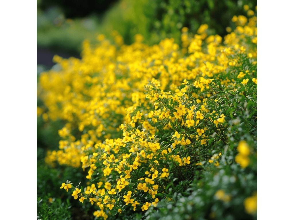 🌼 Květy: drobné, zlatožluté, bohatě pokrývají keř v květnu a červnu