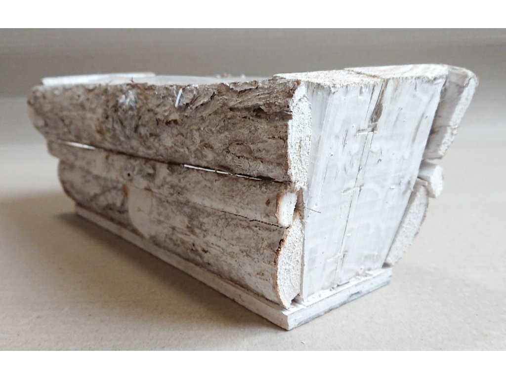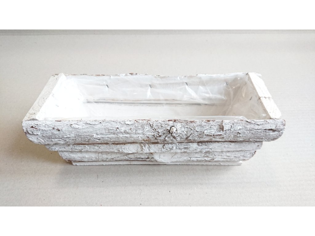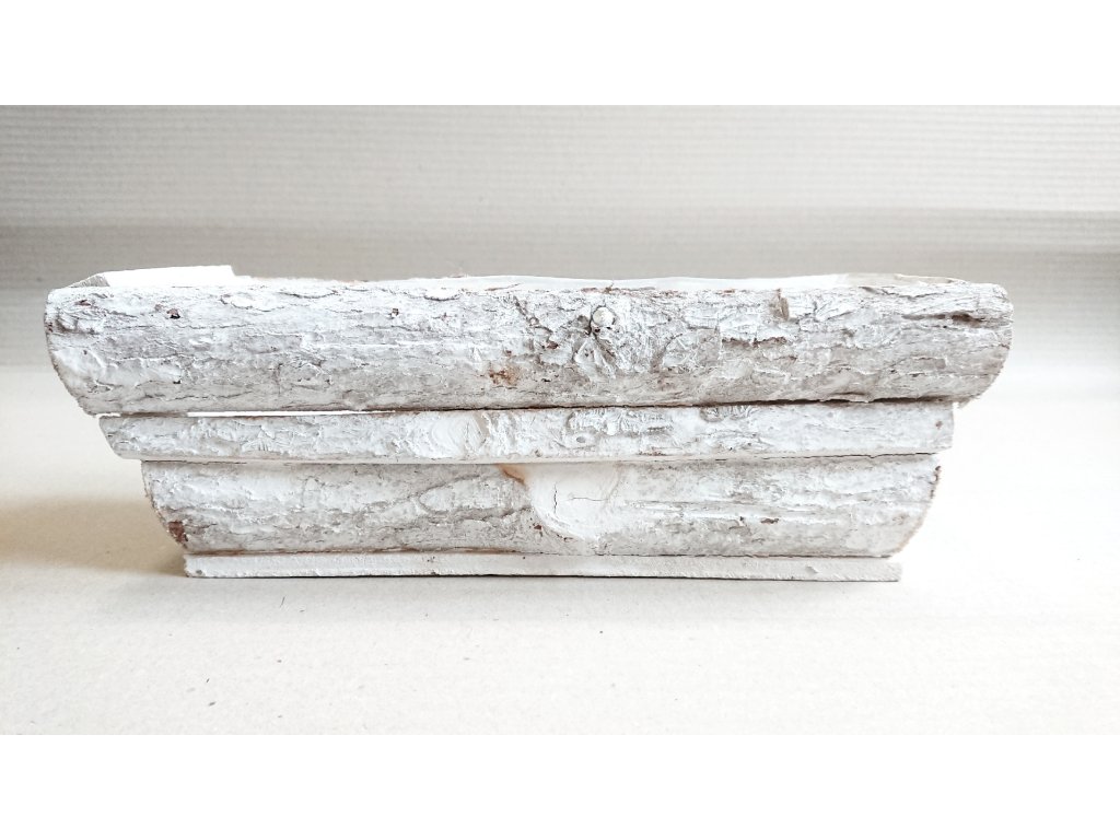 Hranatý truhlík dřevěný bílý s patinou