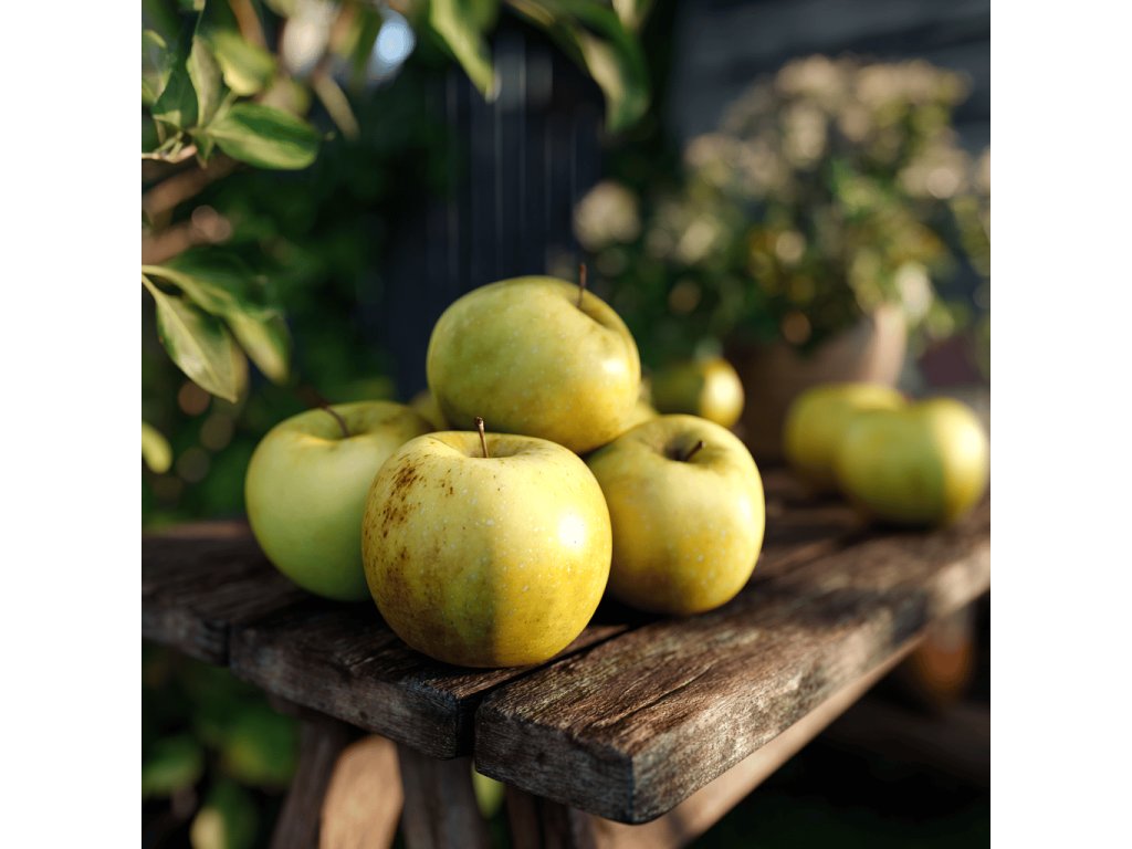 🍎 Plody: střední, kulovité, žlutozelené až žluté; dužnina šťavnatá, navinule sladká