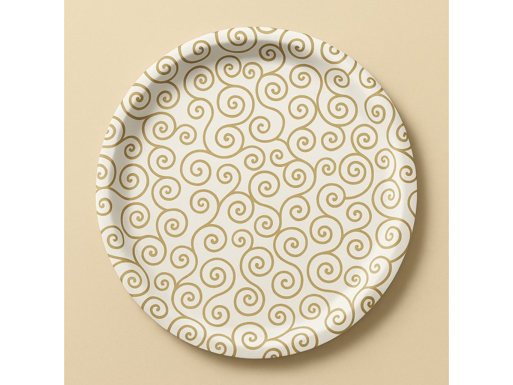 Stylová kombinace bílé a zlaté barvy působí luxusně a čistě. Tác je odolný, lehký a díky mělkému tvaru praktický pro každodenní i slavnostní použití.