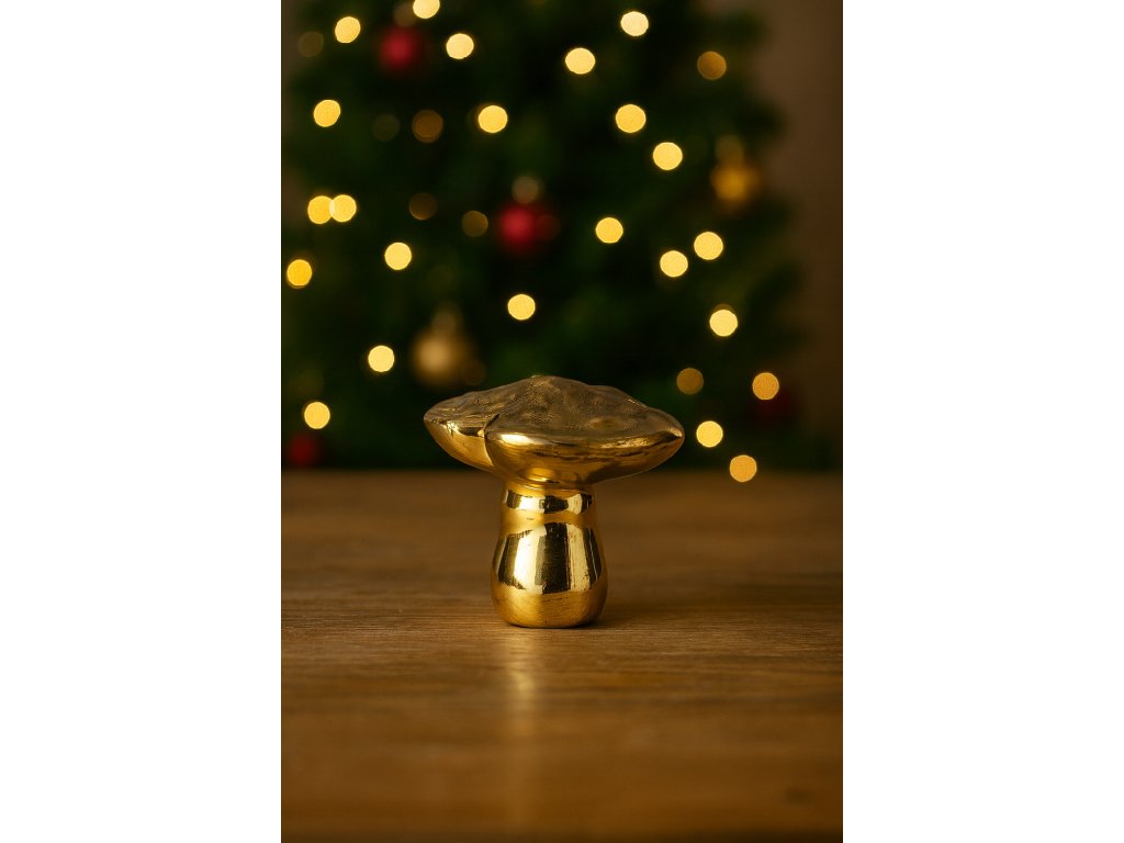 Tato malá porcelánová houbička v lesklém zlatém provedení je elegantním doplňkem pro vaši vánoční výzdobu. Díky decentní velikosti ji snadno umístíte na stůl, poličku, komodu nebo ji začleníte do vánočního aranžmá s dalšími dekoracemi. Zlatá glazura působí luxusně a přitom harmonicky ladí s přírodními i tradičními prvky.