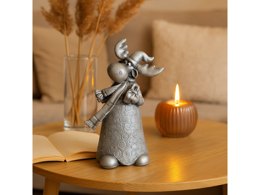 Stříbrný sob s dárkem v ruce střední 18 cm