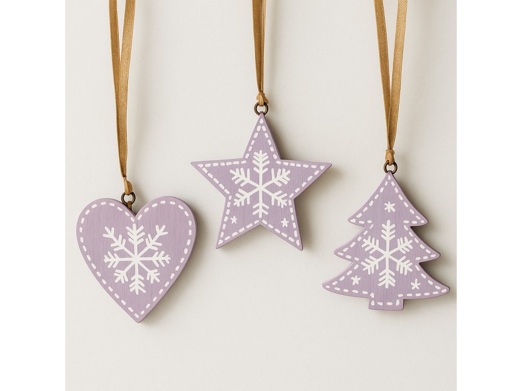 Dřevěné fialové ozdoby 3ks/bal.