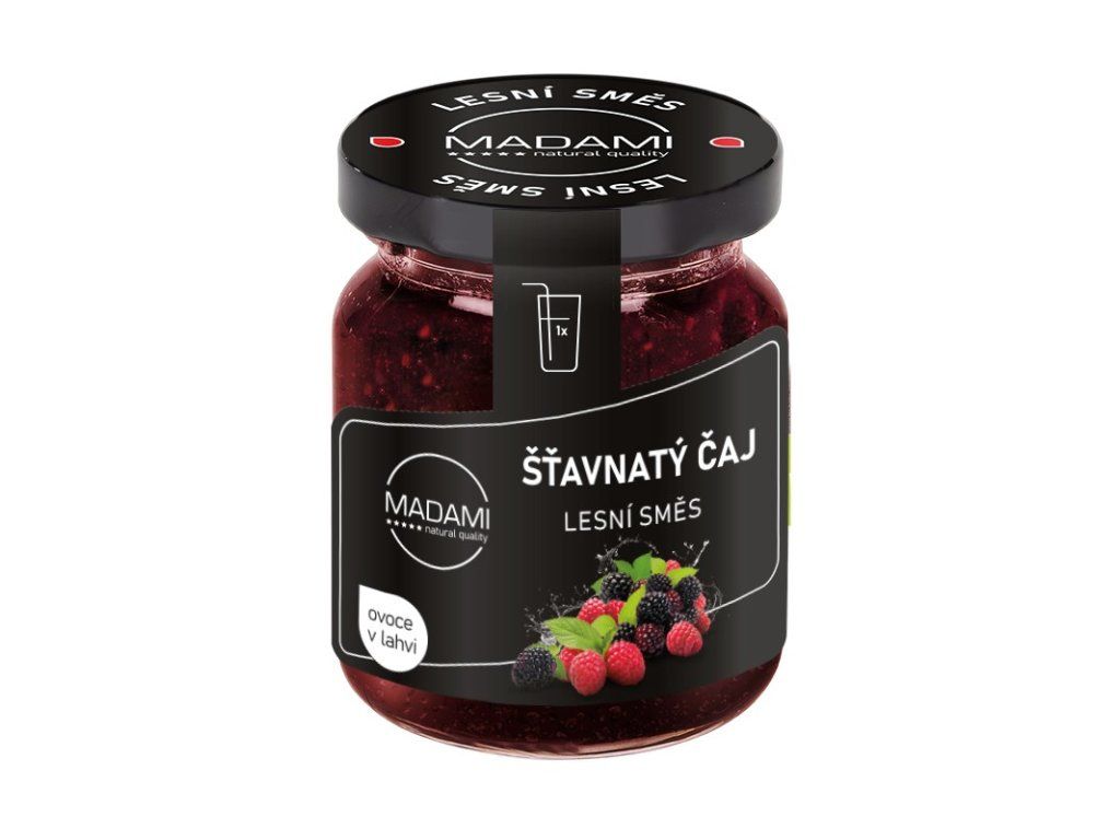 Ovocný koncentrát s bohatě šťavnatou texturou (přezdívá se mu pečený čaj). Má vynikající aroma a plnou chuť malin, ostružin, rybízu a jahod. Slazeno fruktózou a stévií. Šťavnatý čaj od MADAMI můžete použít pro přípravu horkých nápojů, ale i do jogurtu, tvarohu nebo na pečení. Dospělým bude chutnat s kapkou alkoholu.