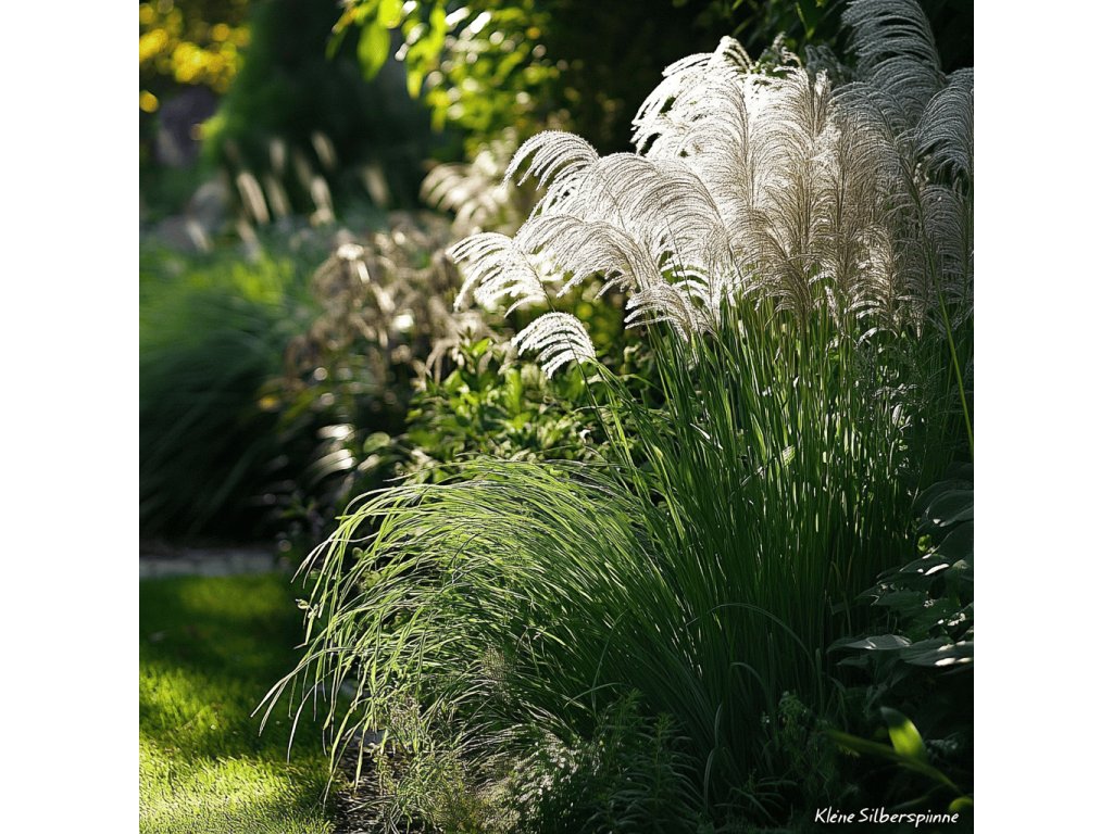 Miscanthus sinensis 'Kleine Silberspinne' – Tento kompaktní kultivar čínského ozdobného rákosu nabízí nádherné stříbrné klasy, které se objevují na konci léta. S výškou dosahující přibližně 1,2 m je ideální pro menší zahrady a kontejnery. Listy jsou úzké, zelené a na podzim se zbarvují do teplých odstínů bronzu. Vytváří elegantní a vzdušný vzhled, který dodává zahradě lehkost a krásu po celé vegetační období. Vhodný pro solitérní výsadby i jako efektivní akcent v trvalkových záhonech.