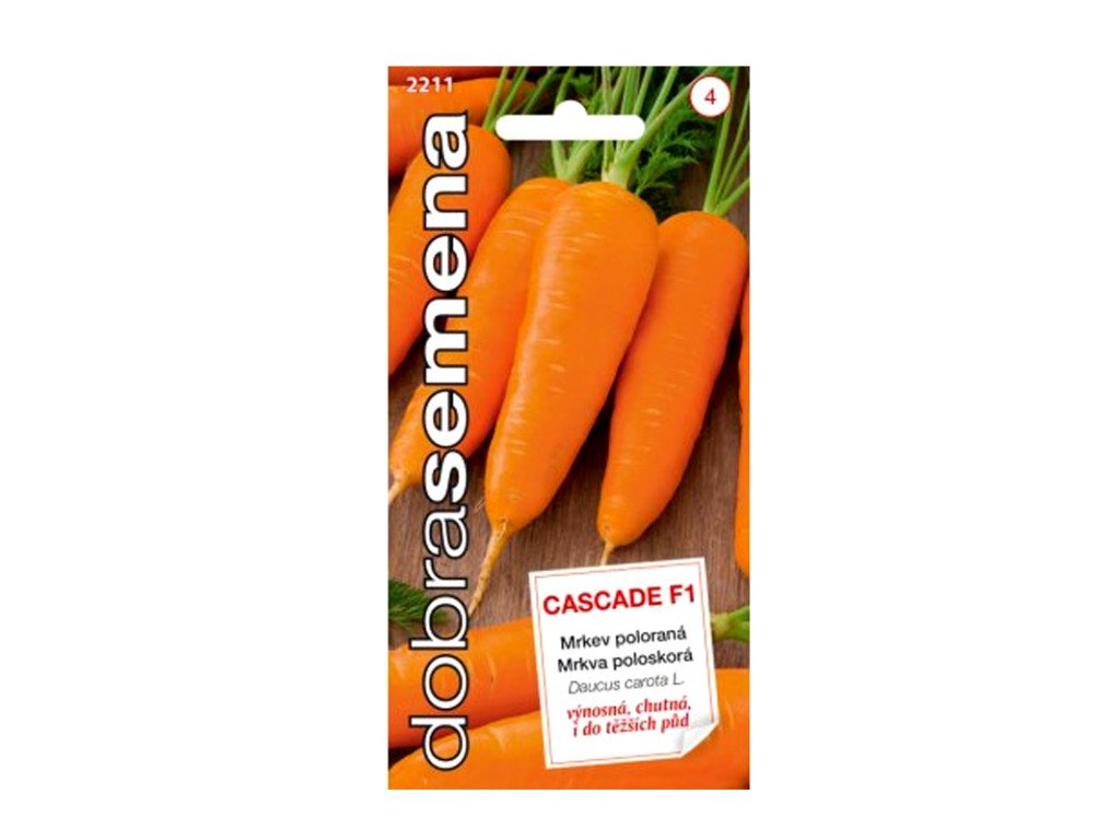 Asi nejchutnější mrkev typu Chantenay. Konické kořeny jsou u nás spojovány s pozdní mrkví na skladování. CASCADE F1 je ale křehká, sladká a šťavnatá. Výborná na letní sklizeň. Vysoce vyrovnaná ve velikosti i ve tvaru kořenů. Odrůda výborná i do těžších půd, kde její krátké kořeny nemají tendenci k větvení.