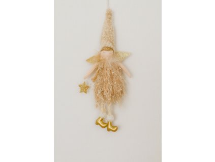 Lehoučká závěsná sněhová vločka se zlatavým třpytem rozzáří stromek i zimní aranžmá. Jemná plastová struktura je oboustranně sypaná třpytkami, takže působí efektně z každého úhlu. Díky nylonovému vlasci ji snadno zavěsíte na větvičku, do okna nebo na sváteční věnec. Elegantní zlatý odstín se dobře kombinuje s červenou, bílou i přírodními tóny.