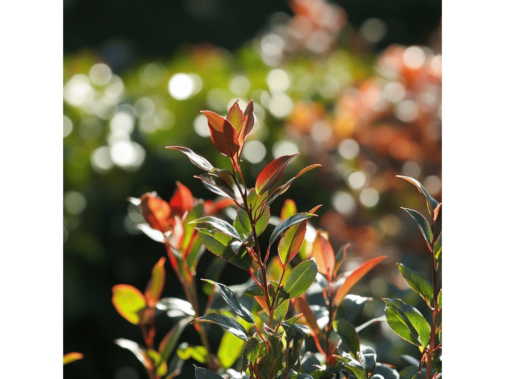 - Listy 🍃: Stálezelené, oválné, mladé výhony sytě červené, poté tmavě zelené