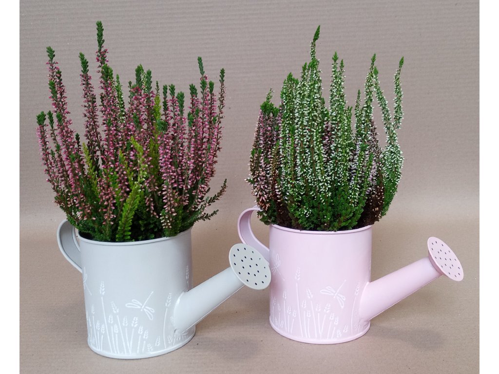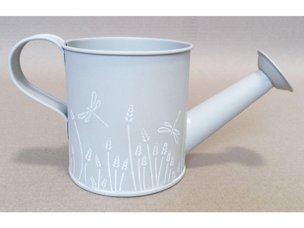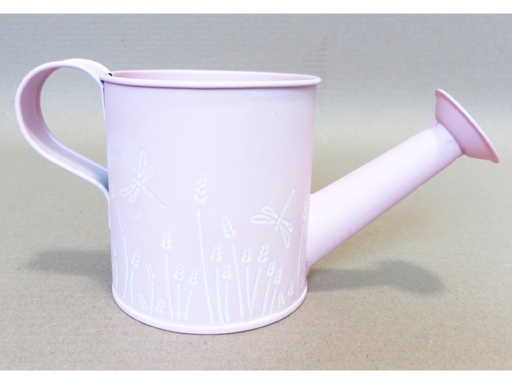 Tato plechová konvička s jemným motivem vážky je krásným doplňkem interiéru i exteriéru. Hodí se pro výsadbu drobných rostlin, jako obal na květináč i samostatnou dekoraci. Je dostupná ve dvou barvách – bílé a růžové – a díky svému designu působí romanticky i venkovsky.