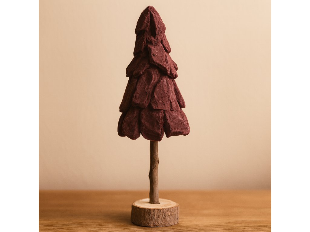 Stromek z kůrových kousků na špalku z kmene hnědý samet