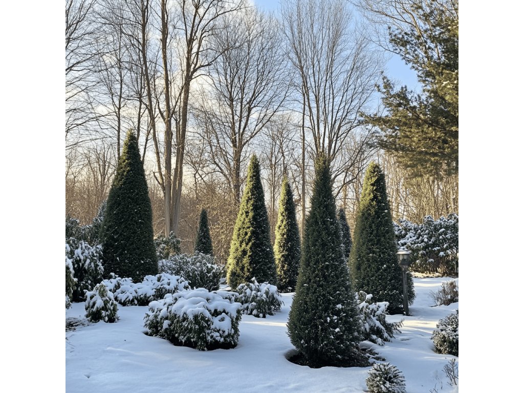 - Habitus 🌳: Úzce kuželovitý tvar; dorůstá výšky 3–5 m a šířky 1–1,5 m