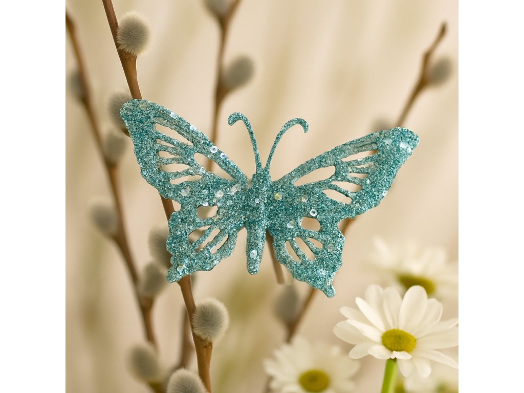 Dekorativní motýl na klipu je ideální pro jarní aranžmá, velikonoční výzdobu i celoroční dekorování. Snadno jej připnete na větvičky ve váze, proutěné věnce, záclony, závěsy nebo textilní dekorace. Hodí se také jako detail do dárkového balení.