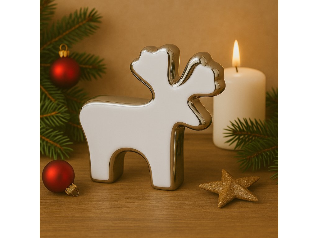 Vánoční figurka sob porcelán bílostříbrný