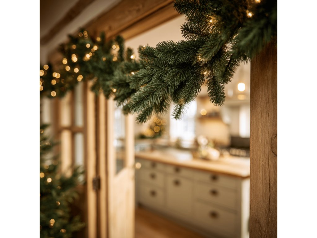 Tato vánoční girlanda z kratšího jehličí představuje univerzální základ pro vaši sváteční výzdobu. Neobsahuje žádné dekorace, takže ji můžete dozdobit podle vlastních představ – přidat světýlka, ozdoby, stuhy nebo přírodní materiály. Díky kratšímu jehličí působí přirozeně a hodí se na stoly, komody, zábradlí i dveře.