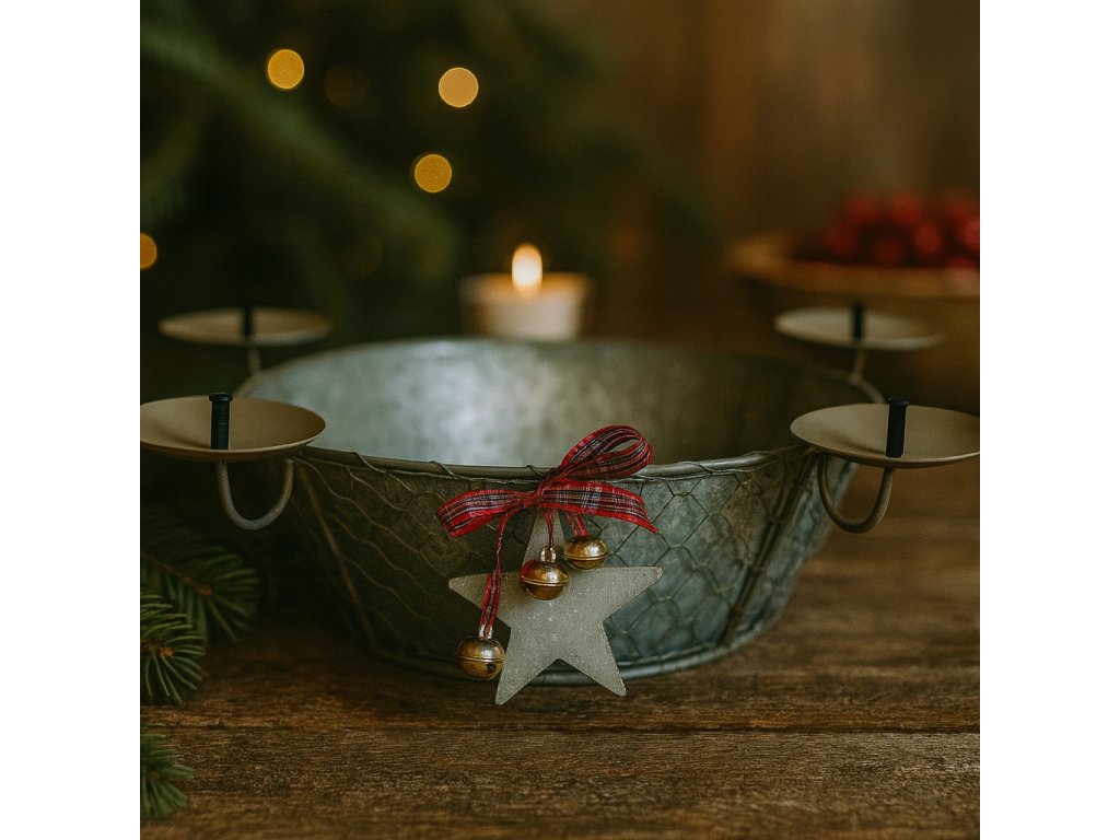 Vánoční kovový pozinkovaný svícen na 4 svíce s vyjímatelným lavorem
