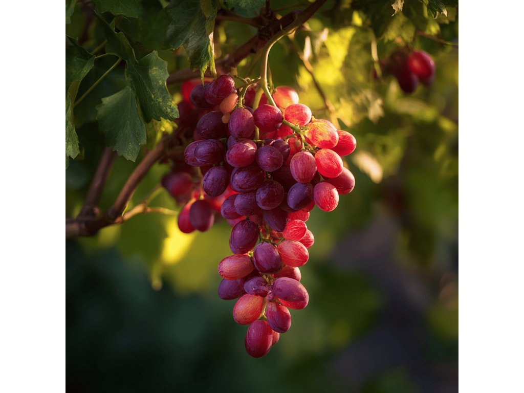 Vinná réva (Vitis vinifera) ’Supernova’ bezsemenná stolní odrůda s růžově červenými bobulemi