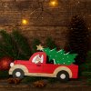 Veselá závěsná dekorace v podobě červeného dřevěného auta se Santou a vánočním stromkem přináší do interiéru hravý sváteční prvek. Kombinace přírodního dřeva a ručního malování působí útulně, zatímco kovový drátek umožňuje snadné zavěšení. Ideální k ozdobení dveří, stěny nebo většího věnce. Díky detailnímu zpracování se stane oblíbenou součástí každoroční výzdoby.